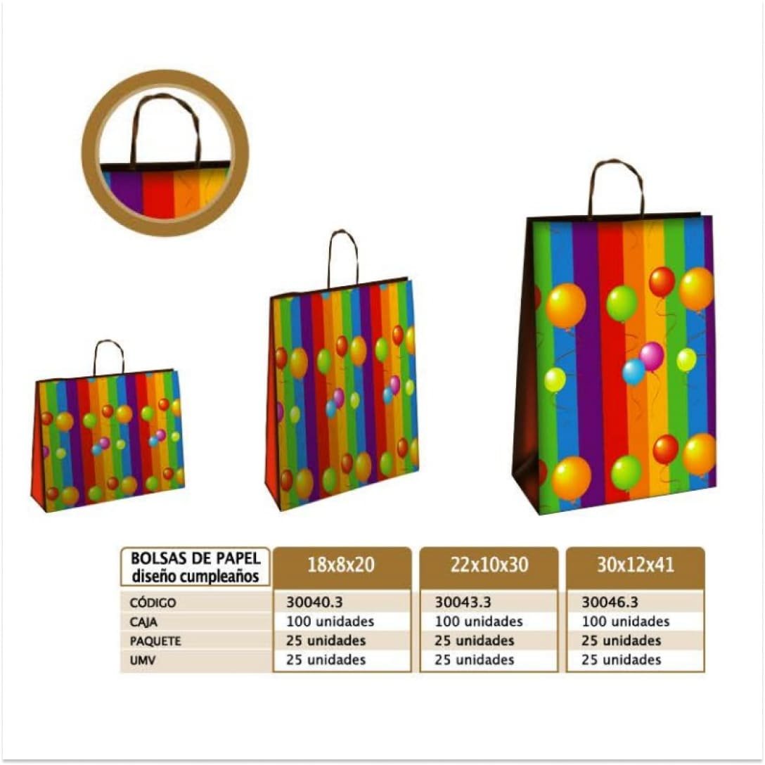 BOLSA CUMPLEAÑOS GLOBOS Y LINEAS COLORES 30X12X41