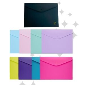 SOBRE POLI A4 PVC REFORZADO PASTEL CON BOTON COLOR SURTIDO