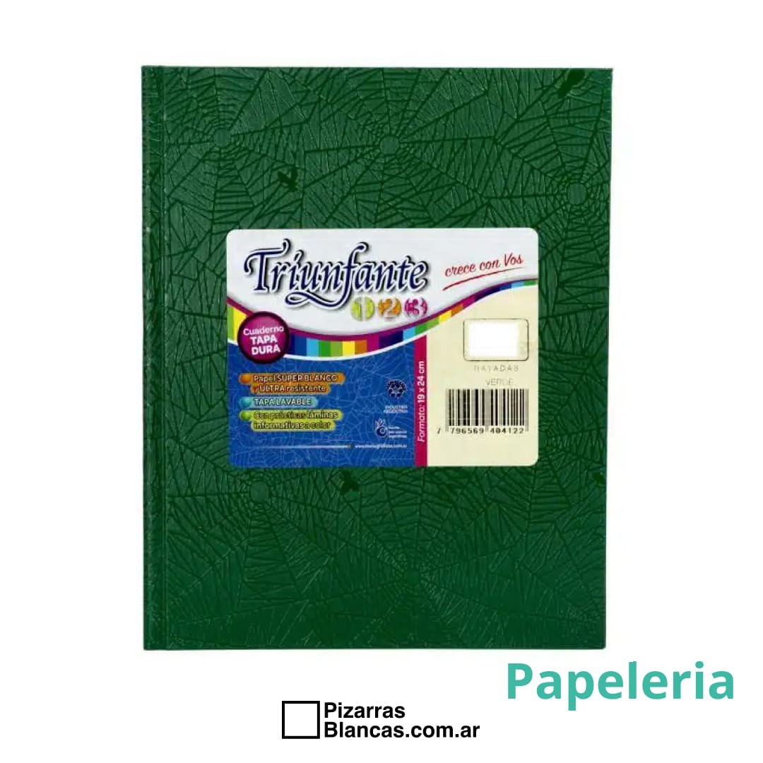 Cuaderno TRIUNFANTE 123 N°3 96H Rayas – Tapa Dura – Verde (19×24)