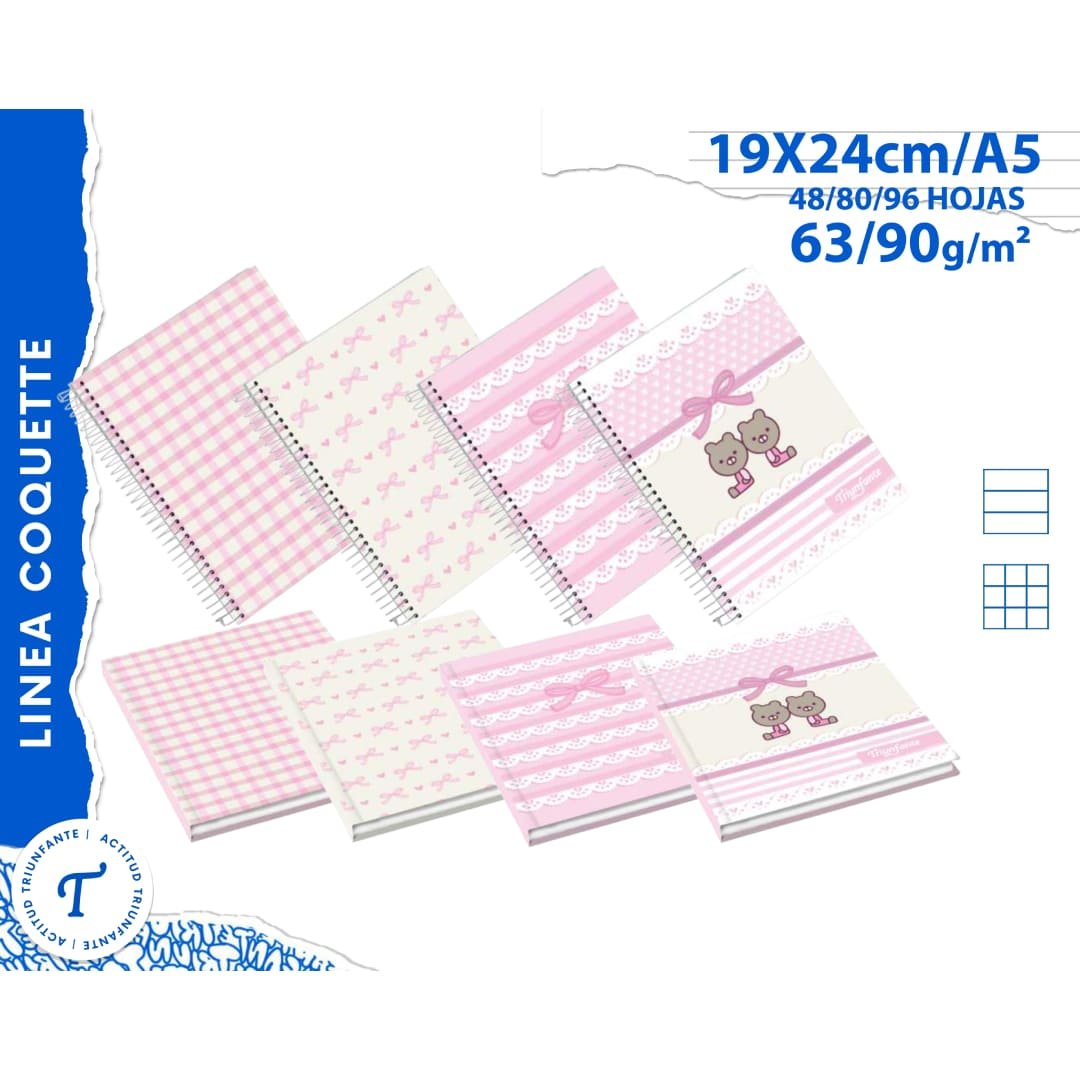 CUADERNO TRIUNFANTE COQUETTE A5 80H CUADRO TAPA DURA ESPIRAL ##