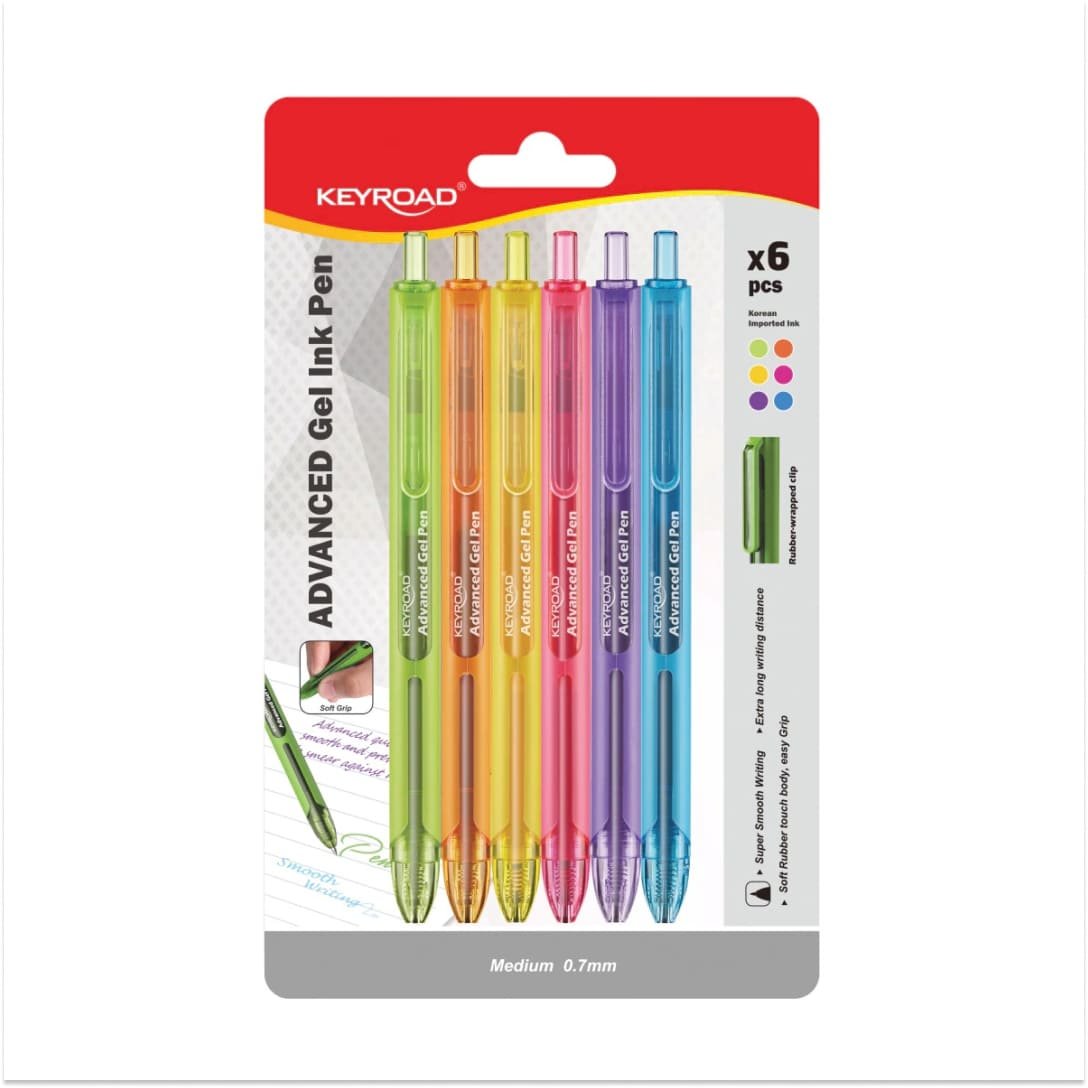 LAPICERA BOLIGRAFO GEL KEYROAD RETRACTIL 0,7 MM, CUERPO DE GOMA BL. X6 SURTIDO(KR972876-6)