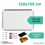 Pizarrón – Pizarra blanca para marcador con marco + marcador + borrador + fijaciones + soporte para marcador y borrador.
